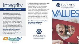 Included in our primary logo is our logo’s registration mark, exhibited as a ® at the base of the right foot of our name. As a legally registered mark, the logo mark for Buckner is protected and monitored under Federal Law and must be used correctly and in its officially approved form. To protect the integrity of our logo, it must always be reproduced correctly. Because our logo is legally registered, we are required by the Federal Trade Commission (FTC) to police the use of the mark. We are also required by the FTC to periodically submit samples of the logo’s use to ensure we are complying with the legal registration.