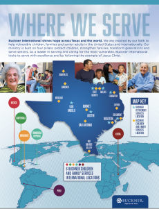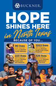 Buckner North Texas is a faith-based nonprofit ministry dedicated to transforming the lives of vulnerable children, families and senior adults. Buckner North Texas is an extension of Buckner International, which was founded in 1879 in Dallas and today serves people in the United States and internationally through a variety of programs designed to protect children, strengthen families, transform generations and serve seniors. These programs include foster care and adoption, family transition programs, community-based family preservation programs and retirement services for senior adults. Buckner also provides humanitarian aid and crisis relief to poverty-stricken children and families. Visit Buckner.org/Dallas-Fort-Worth to learn more or get involved.