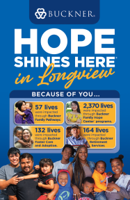 Buckner Northeast Texas, based in Longview, is a faith-based nonprofit ministry dedicated to transforming the lives of vulnerable children, families and senior adults. Buckner Northeast Texas is an extension of Buckner International, which was founded in 1879 in Texas and today serves people in the United States and internationally through a variety of programs designed to protect children, strengthen families, transform generations and serve seniors. These programs include foster care and adoption, family transition programs, community-based family preservation programs and retirement services for senior adults. Buckner also provides humanitarian aid and crisis relief to poverty-stricken children and families. Visit Buckner.org/Longview to learn more or get involved.