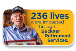 Through Buckner Foster Care and Adoption, the Ledet family had the support to foster and encourage more than 20 vulnerable children. And for Carey Augustin, she opened her home to three teenage sisters as a fictive kin placement after raising her own adult children and gave them a place to call home forever. Murray Anderson and Clement Mohr, both veterans, have experienced the joy of community and activity at Buckner Calder Woods.