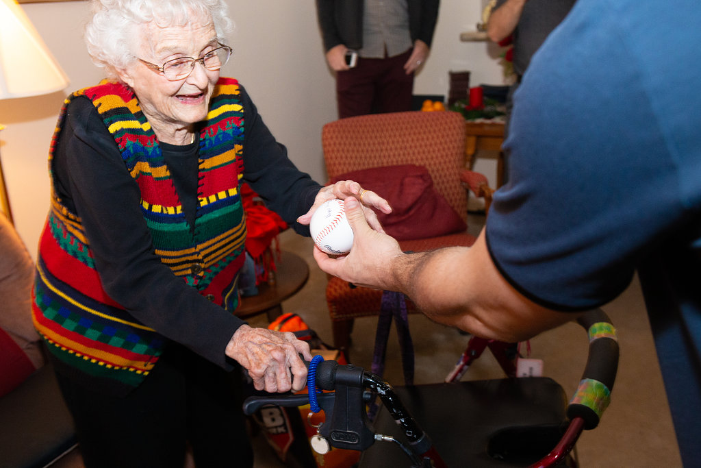 Como fanática acérrima del béisbol y de los Astros, Shirley se sorprendió y emocionó al ver a uno de sus jugadores favoritos entrar por la puerta para desearle un feliz cumpleaños.