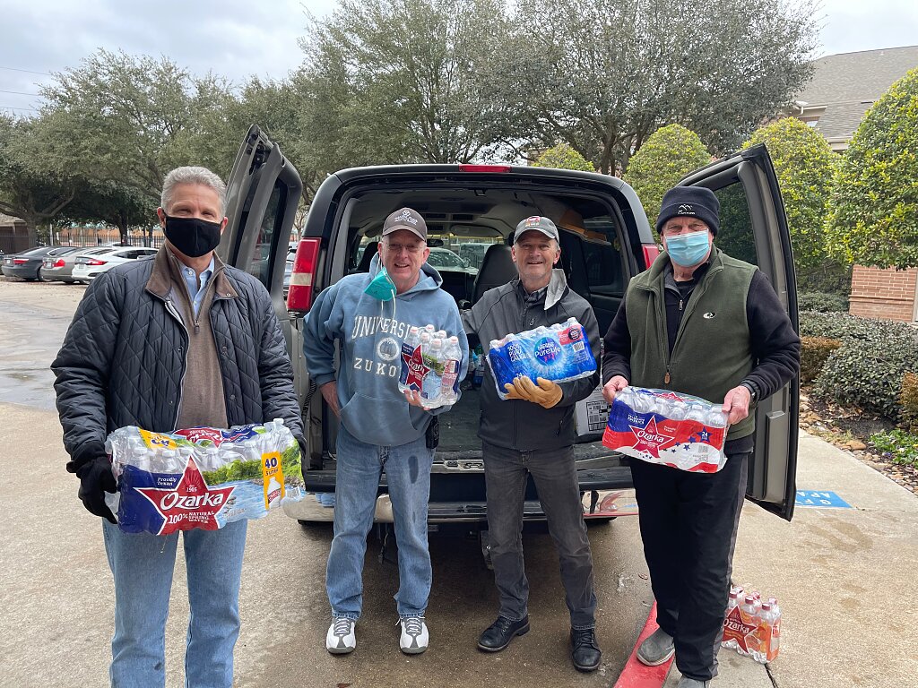 La iglesia bautista Tallowood entregó 115 cajas de agua a la comunidad de personas mayores. Los miembros de la iglesia y sus familias recorrieron Houston ayer y esta mañana comprando cajas de agua para llevarlas a los adultos mayores de Parkway Place.