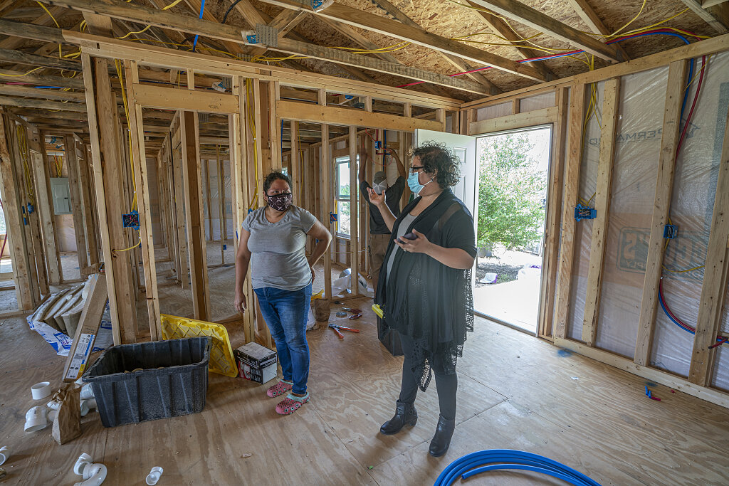 Puede decir eso último con una leve sonrisa porque, mientras sigue caminando, pasa por delante de su nuevo negocio de guardería comercial, dobla la esquina de la casa móvil y ve su nuevo hogar, una casa de madera de dos dormitorios que están construyendo los voluntarios de Buckner, con la ayuda del personal de Buckner Missions.