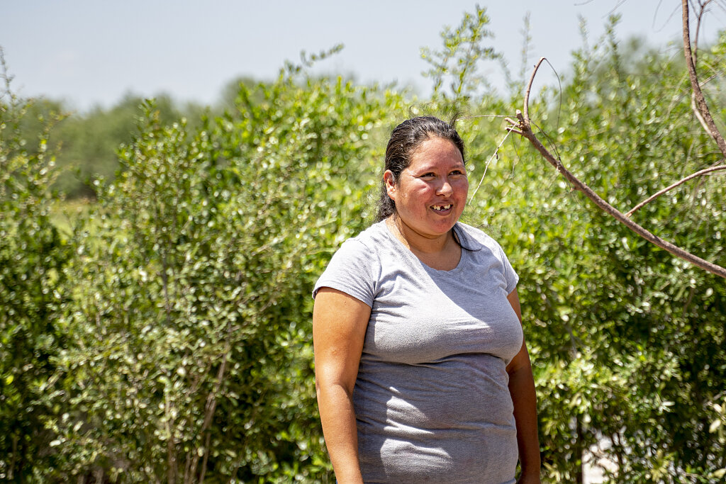 Cuando Miriam Salinas sale de su casa móvil para saludarnos bajo el calor tropical del Valle del Río Grande, es como si saliera del pasado y entrara en su futuro.