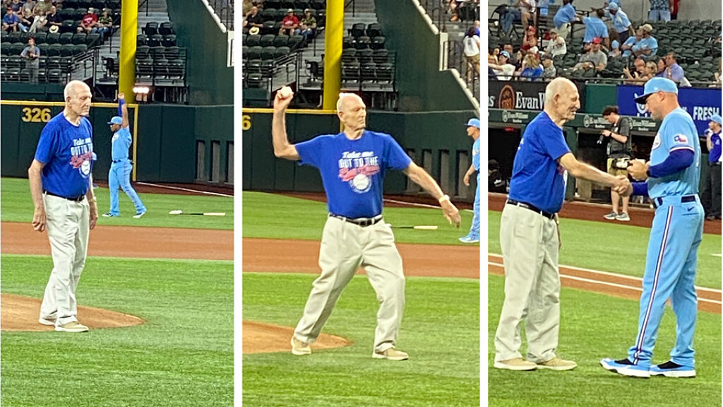 Ventana par Buckner Le membre Ted Reynolds a eu l'honneur de lancer la première balle. Âgé de 91 ans, M. Reynolds est originaire d'Aledo, au Texas, où il a joué dans la première équipe de football américain que le lycée ait jamais eue. Il a également joué à la TCU de 1950 à 1952. M. Reynolds a pris sa retraite après une carrière dans les affaires dans l'Illinois, où il a créé une entreprise de fabrication d'aliments pour animaux.