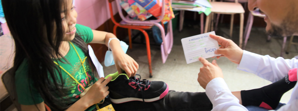 “ Il se passe quelque chose de spécial lorsque vous vous agenouillez pour retirer les vieilles chaussures et chaussettes usées, que vous lavez les pieds d'un enfant et que vous lui enfilez des chaussettes et des chaussures neuves ”, explique Reyes. “ C'est un moment spécial pour moi. Mais ce moment est suivi d'un autre moment spécial pour l'enfant, lorsqu'il ou elle affiche un large sourire et commence à essayer ses nouvelles chaussures. ”