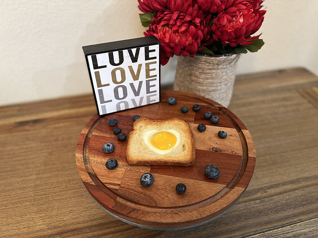 - Un petit-déjeuner copieux à base d'œufs. Sortez votre emporte-pièce et préparez un petit-déjeuner amusant et unique avec cette recette. Œuf dans un trou pour la Saint-Valentin.