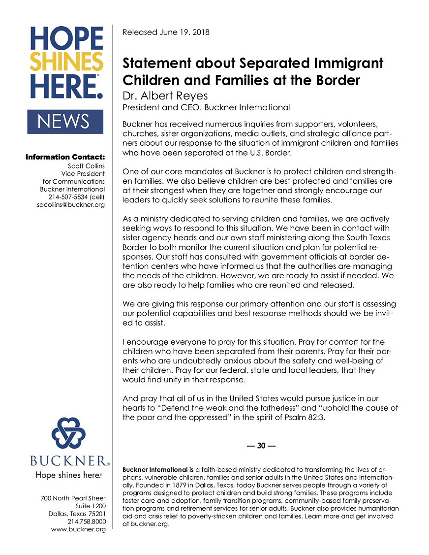 Déclaration concernant les enfants et les familles immigrés séparés à la frontière