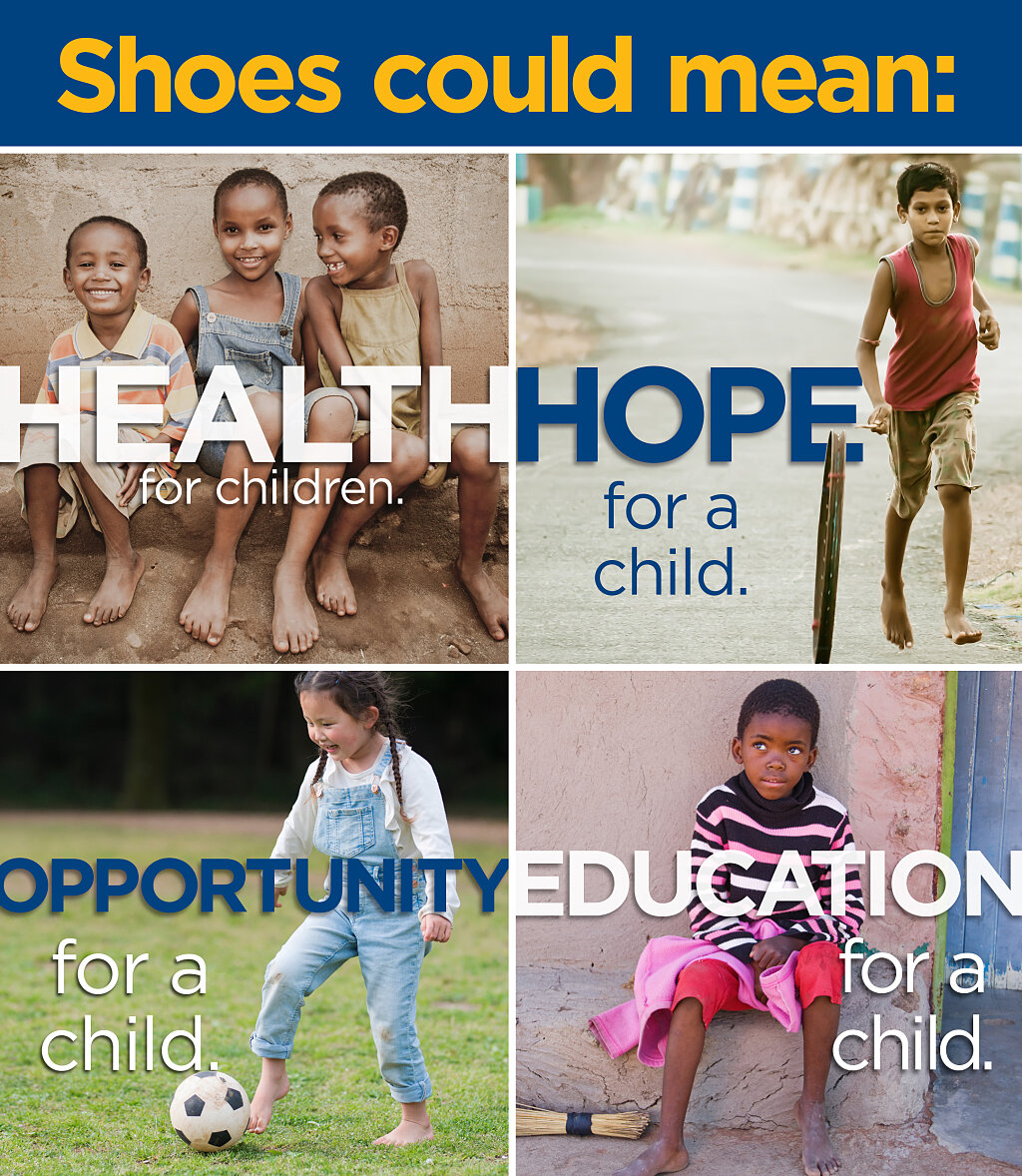 Le don de chaussures peut venir en aide à un enfant ou à une famille en situation de crise réelle. Ils peuvent être l'élément nécessaire pour assurer la sécurité et la santé d'un enfant. Ils peuvent leur permettre de recevoir l'éducation qui pourrait être la prochaine étape pour sortir de la pauvreté. Ou ils peuvent être une porte d'entrée vers la transformation vécue dans des ministères conçus spécialement pour eux.