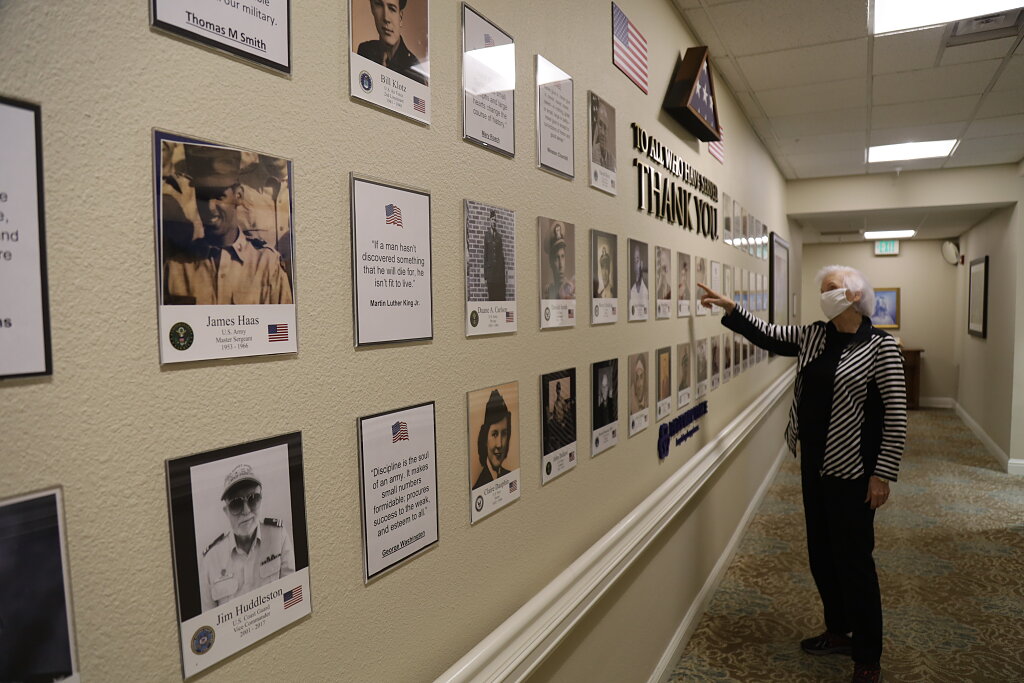 Le mur commémoratif des anciens combattants de Parkway Place présente actuellement les photos militaires de 30 résidents, avec de la place pour en ajouter d'autres.