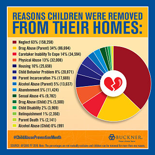 Gần 60% trẻ em được đưa vào hệ thống chăm sóc nuôi dưỡng là do bị lạm dụng hoặc bỏ bê. Năm 2019, Texas đã ghi nhận hơn 67.000 trường hợp lạm dụng hoặc bỏ bê trẻ em được xác nhận.