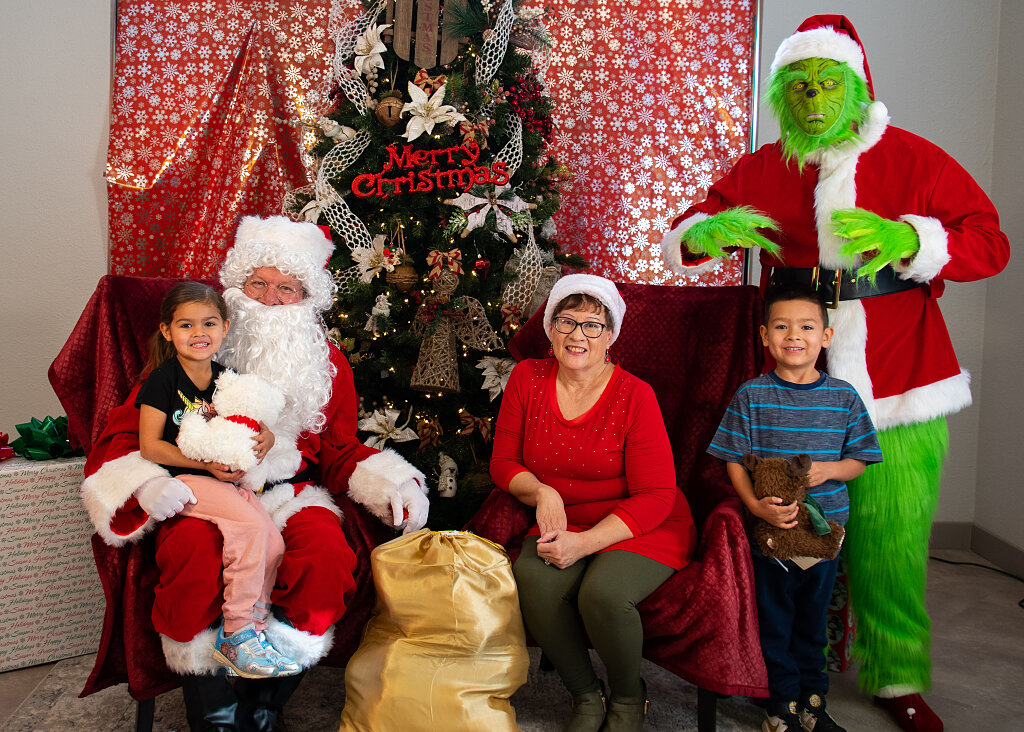 Các gia đình tham gia chương trình huấn luyện gia đình tại Trung tâm Hy vọng Gia đình Buckner ở Lubbock đã có cơ hội gặp gỡ Ông già Noel, Bà Claus và Grinch trong khu chợ Giáng sinh.