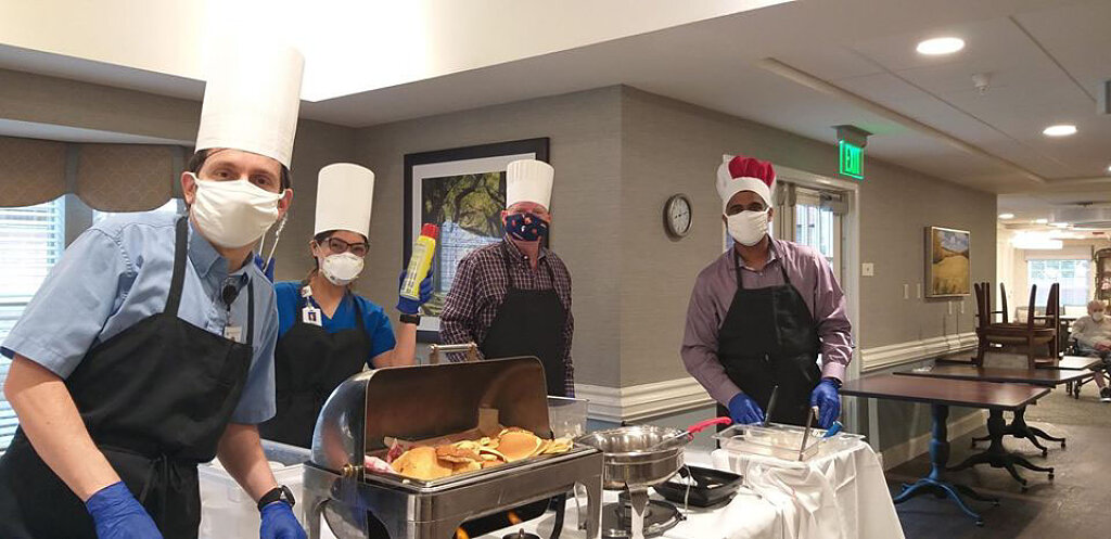 Trong số nhiều nhân viên, Derone Martin, đầu bếp tại Buckner Parkway Place trong Houston, Texas, đã hoạt động trong ngành chăm sóc người cao tuổi hơn một thập kỷ. Derone đã điều chỉnh cách thức thông thường để cung cấp sản phẩm, cũng như lịch trình và giao bữa ăn cho cư dân trong bối cảnh chưa từng có này.