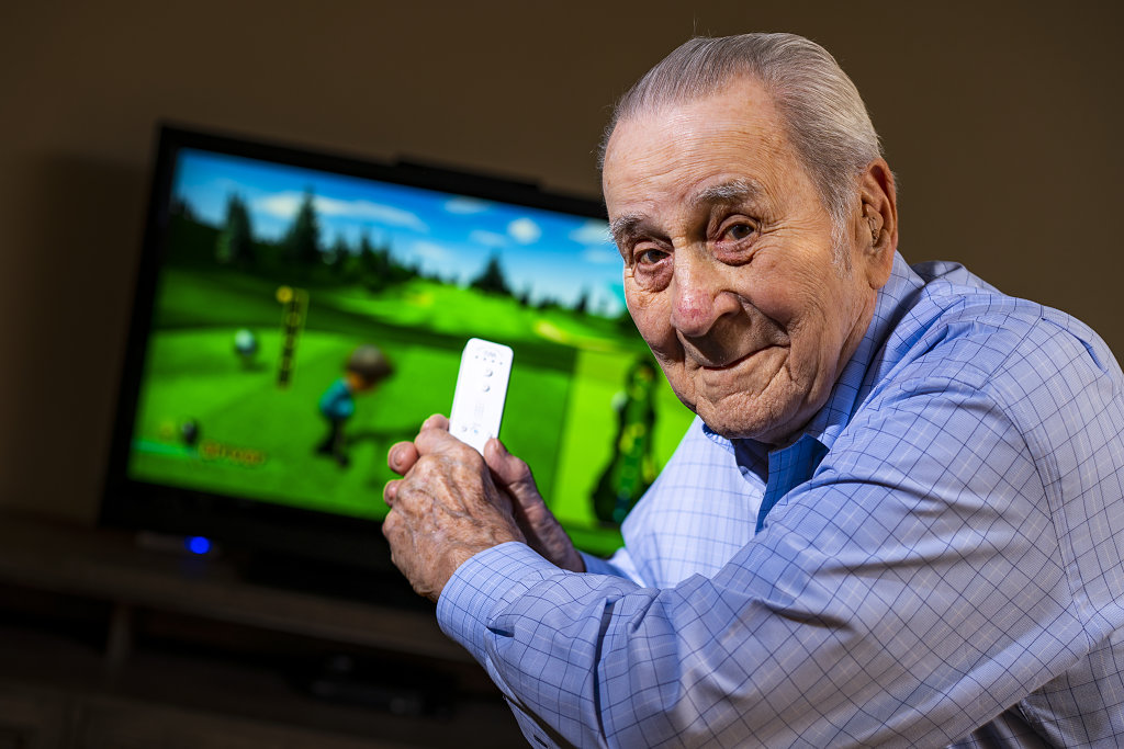 Merrel Schilling, 96 tuổi, từng chơi golf đều đặn và có thể tận hưởng các sân golf trên khắp cả nước nhờ công việc trong ngành thép khiến ông phải di chuyển liên tục. Hiện tại, Merrel không thể đến sân golf nữa, nên ông đã thử thách bản thân bằng cách học cách sử dụng Nintendo Wii và nhờ cháu trai hướng dẫn. Chơi 18 hố golf trên Wii là hoạt động mà Merrel và bạn bè tại Buckner Parkway Place thường xuyên tham gia, và họ thậm chí còn tổ chức các giải đấu để tạo ra sự cạnh tranh thân thiện.