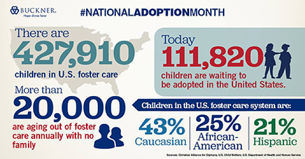 Tháng nâng cao nhận thức quốc gia này mang đến cho chúng tôi và các cơ quan chăm sóc nuôi dưỡng và nhận con nuôi khác một cơ hội để giáo dục người dân trên khắp Hoa Kỳ về nhu cầu cấp thiết về các gia đình nuôi dưỡng và nhận con nuôi đầy tình thương. Theo Liên minh Trẻ em cho Trẻ mồ côi, hiện có 111.820 trẻ em đang chờ được nhận con nuôi tại Hoa Kỳ. Tại Texas, có gần 30.000 trẻ em đang sống trong hệ thống chăm sóc nuôi dưỡng hoặc chăm sóc họ hàng. Chúng tôi vô cùng biết ơn Chúa vì đã đặt việc chăm sóc nuôi dưỡng và nhận con nuôi vào trái tim của tất cả các gia đình đồng hành cùng Buckner trong việc cung cấp những mái ấm đầy tình thương cho trẻ em cần giúp đỡ.