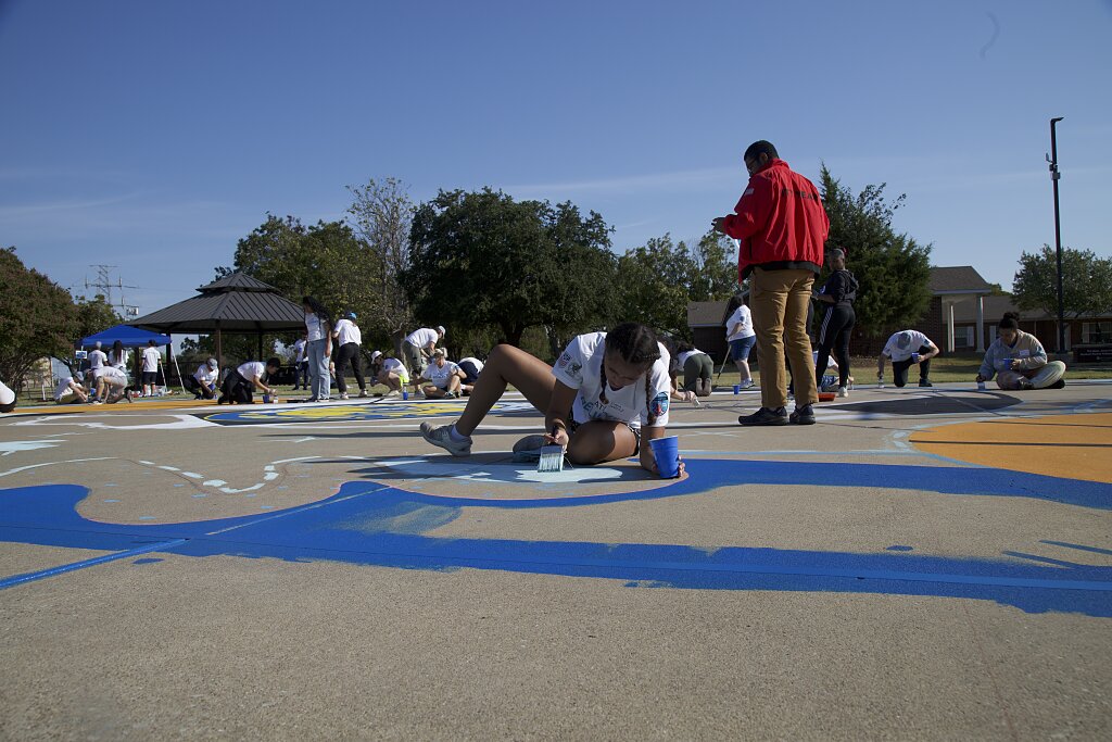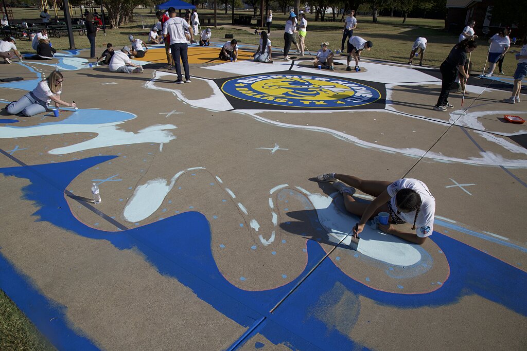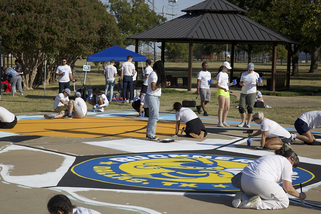 Vào ngày 14 tháng 10, khoảng 40 tình nguyện viên từ AT&T và City Year đã dành bốn giờ để vẽ tay một bức tranh tường một cách cẩn thận trên sân bóng rổ tại khuôn viên Dallas của Buckner International dành cho trẻ em và gia đình.